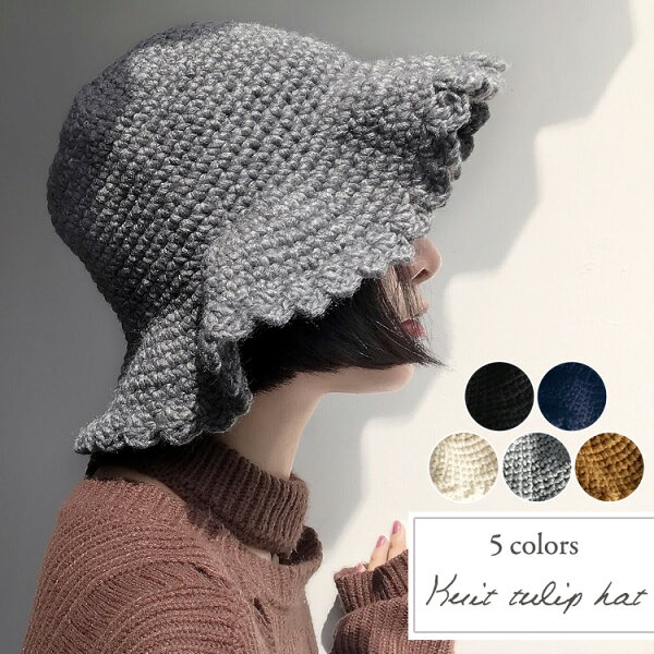 この商品について 4393〔ニットチューリップ帽子〕 温もりのあるニット素材で編まれたチューリップ帽子。
